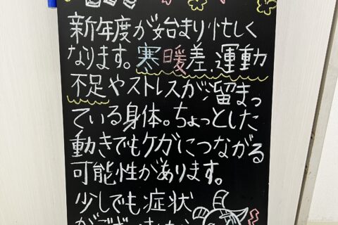 4月になりました!! 新年度が始まり、忙しくなります。 寒暖差、運動不足やストレ...