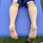 春リーグが開幕し、第2節目。強度の高いチームとの試合が続くため、様々な事を考え準備しました。試合前の活動として、頻回する足関節捻挫が原因のアライメント異常による可動域制限予防の整復(1名)、両足関節内返し強制による捻挫後の固定テーピング(1名)、左足関節内返し強制による外側靭帯損傷後の固定テーピング(1名)、左足関節外返し強制による内側靭帯損傷後の固定テーピング(2名)、左大腿部前面の筋挫傷後の圧迫固定テーピング(1名)、両側下腿部筋挫傷予防の保護テーピング(1名)、右膝関節内側側副靭帯損傷後固定テーピング(1名)、右膝関節前十字靭帯損傷後固定テーピング(1名)を施しました。リーグ第2節で多くの傷害や不安を訴える選手が多い中できる範囲でのフォーローに徹底したいと思います。