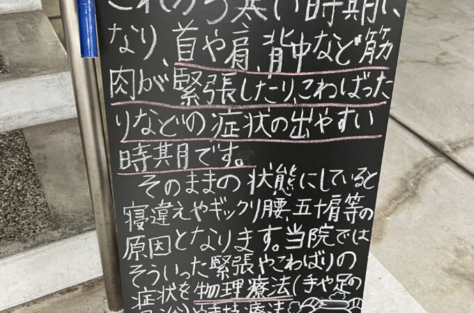 これから寒い時期になり首や肩、背中など筋肉が緊張したり、こわばったりなどの 症状の出やすい時期です。 そのままの状態にしていると寝...