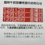 上記、金曜日の午前診療は、院長所用の為、臨時休診致します。